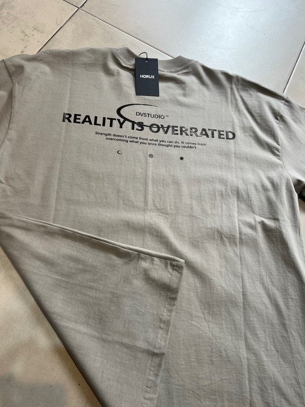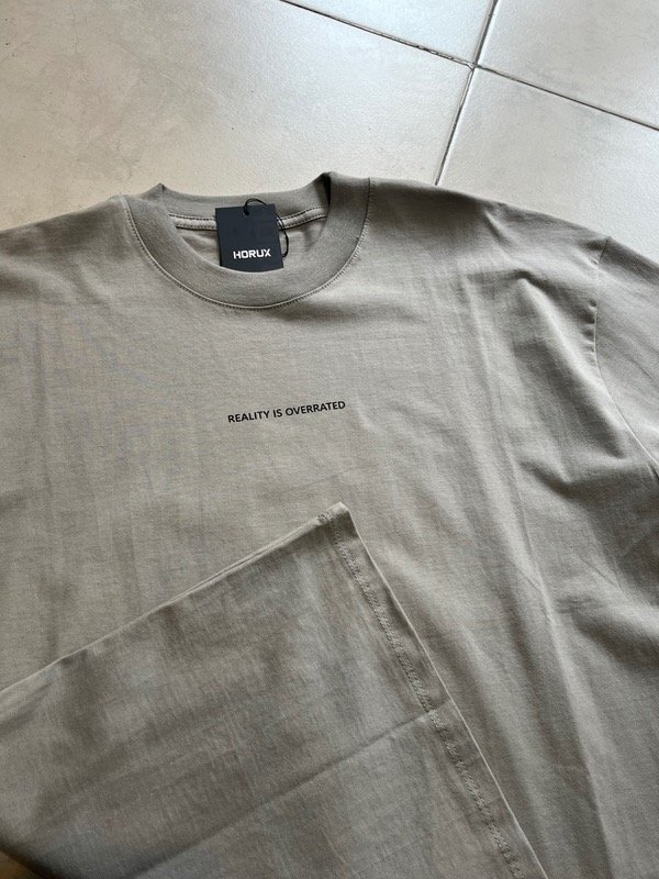 Remera Oversize Reality con estampa adelante y sin estampa atras, contamos con el color cemento y pecan de este modelo