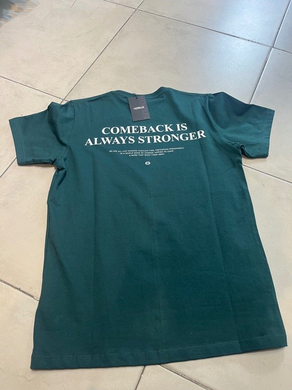 Remera Comeback con estampa adelante y con estampa atras, contamos con el color verde y plomo de este modelo